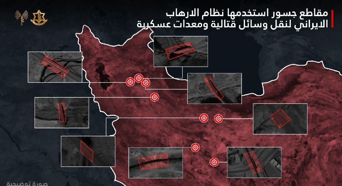 الجيش الاسرائيلي: هاجمنا ثمانية مقاطع من الجسور التي استخدمها النظام الإيراني لنقل وسائل قتالية ومعدات عسكرية