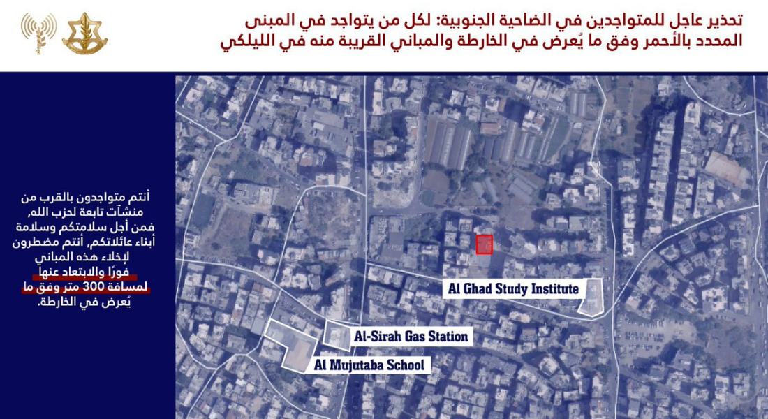 انذار اسرائيلي للحدت – الضاحية الجنوبية
