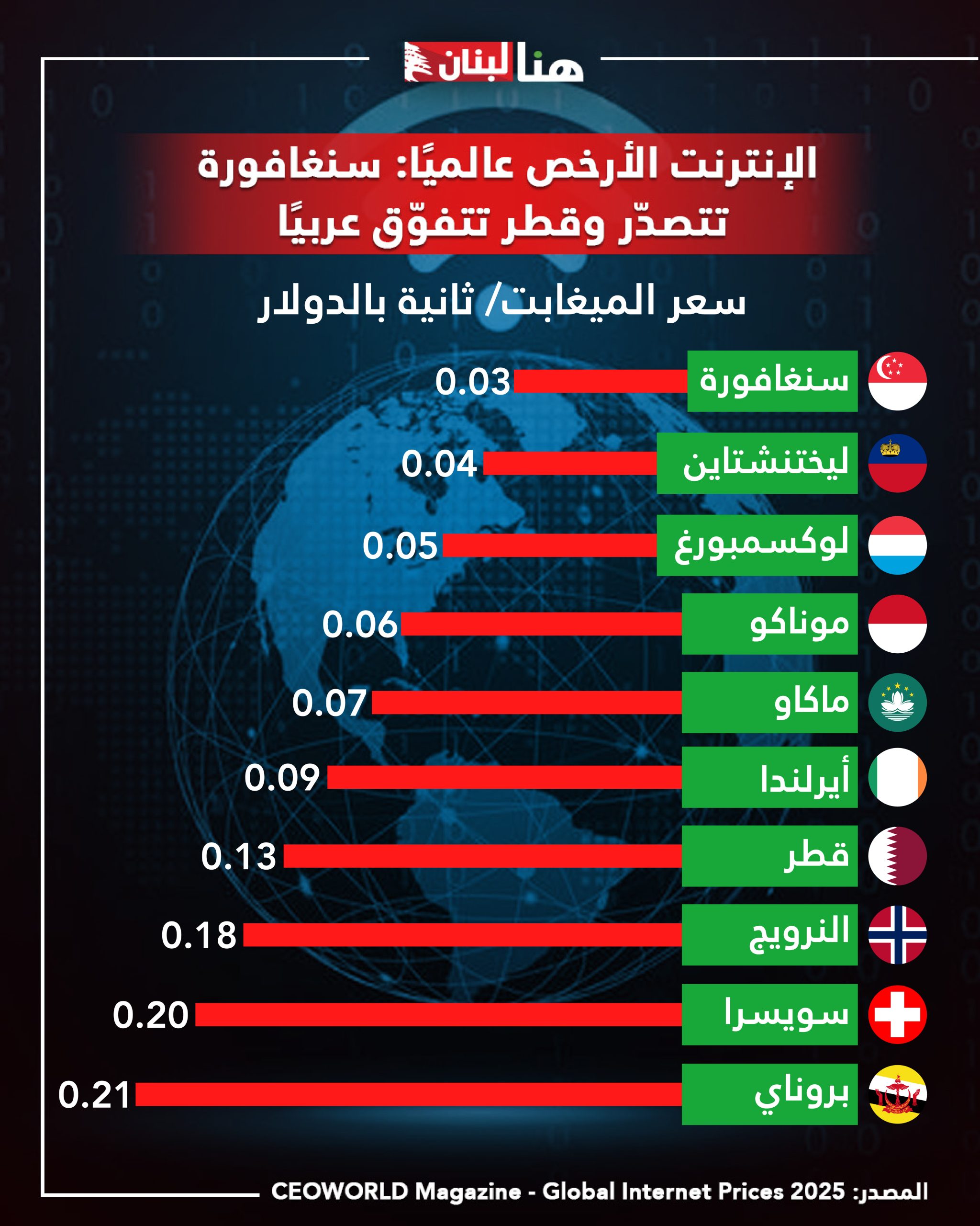 الإنترنت الأرخص عالميًا: سنغافورة تتصدّر وقطر تتفوّق عربيًا