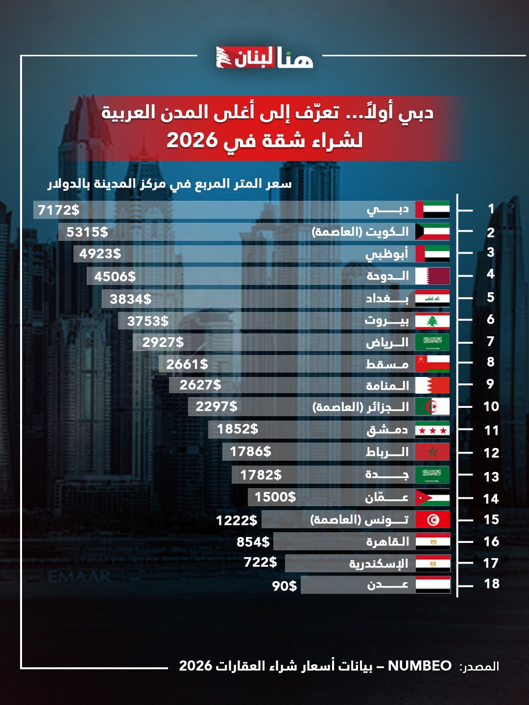دبي أولاً… تعرّف إلى أغلى المدن العربية لشراء شقة في 2026