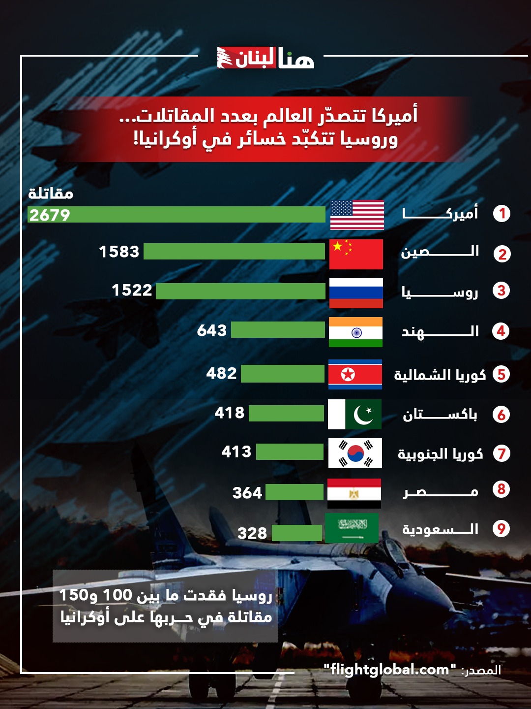أميركا تتصدّر العالم بعدد المقاتلات… وروسيا تتكبّد خسائر في أوكرانيا!