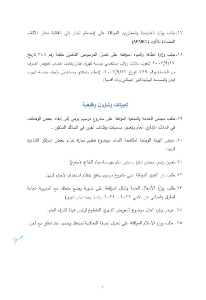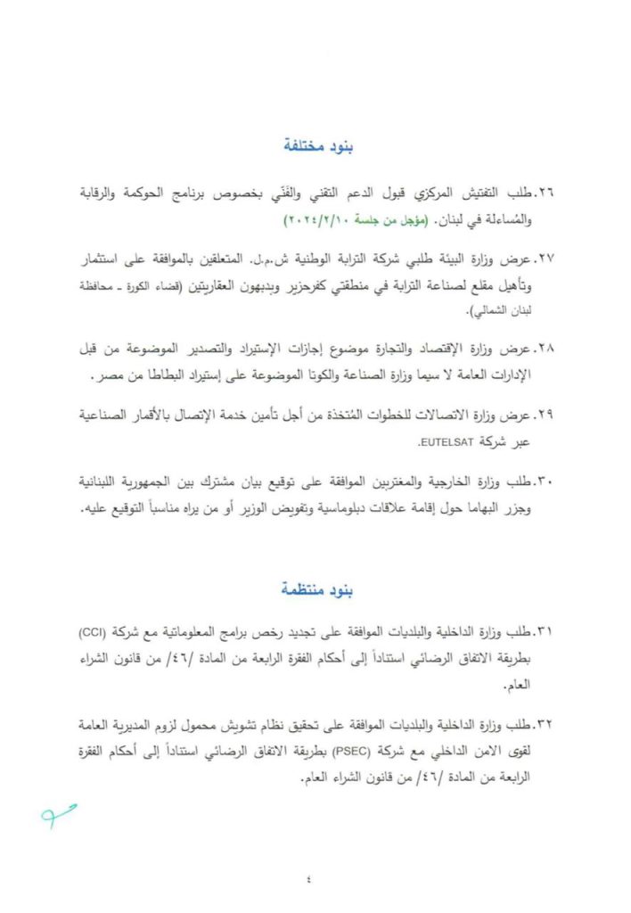 يعقد مجلس الوزراء جلسةً عند السّاعة الثّالثة من بعد ظهر يوم الخميس المقبل الواقع في 20/11/2025، في القصر الجمهوري في بعبدا، للبحث في جدول الأعمال المؤلّف من 40 بندًا.