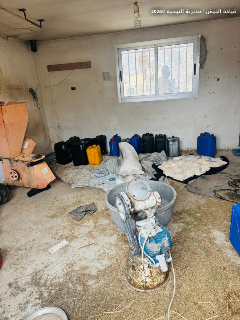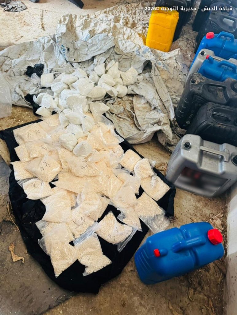 كذلك نفذت مديرية المخابرات عمليات دهم في منطقتَي ألفون والحميرة – الهرمل، وضبطت معملًا لتصنيع المخدرات، إضافة إلى كمية كبيرة من حبوب الكبتاغون والمواد الأولية المستخدمة في تصنيعها.