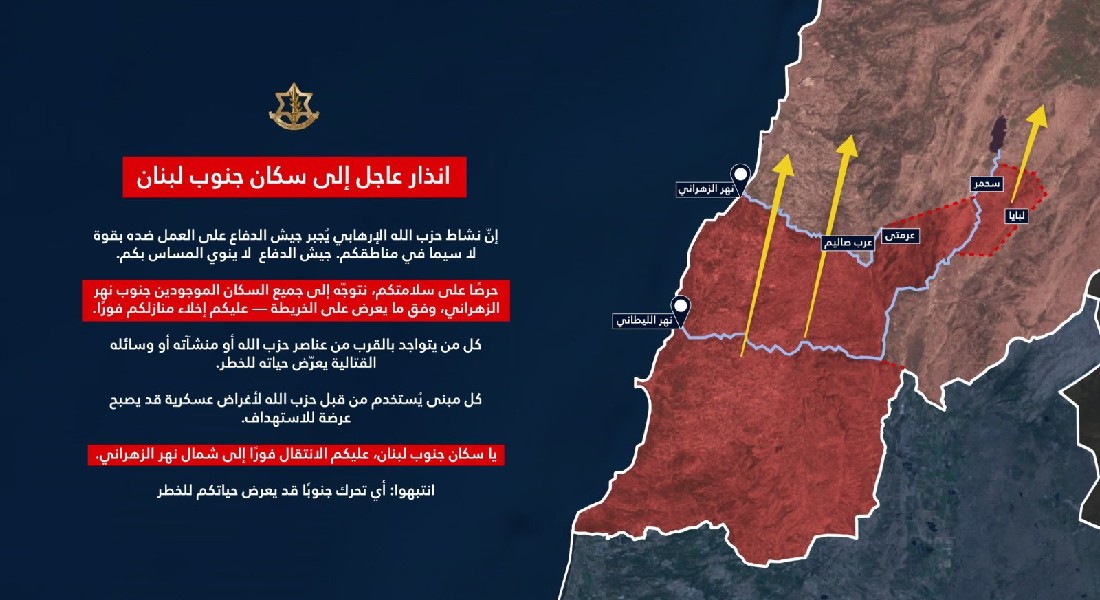 إنذار عاجل إلى سكان جنوب نهر الزهراني | إنذار كاذب بإخلاء منزل في القليعات يثير بلبلة… والبلدية توضح | بعد الغارات على الضاحية… إنذار إسرائيلي إلى قرى الجنوب |