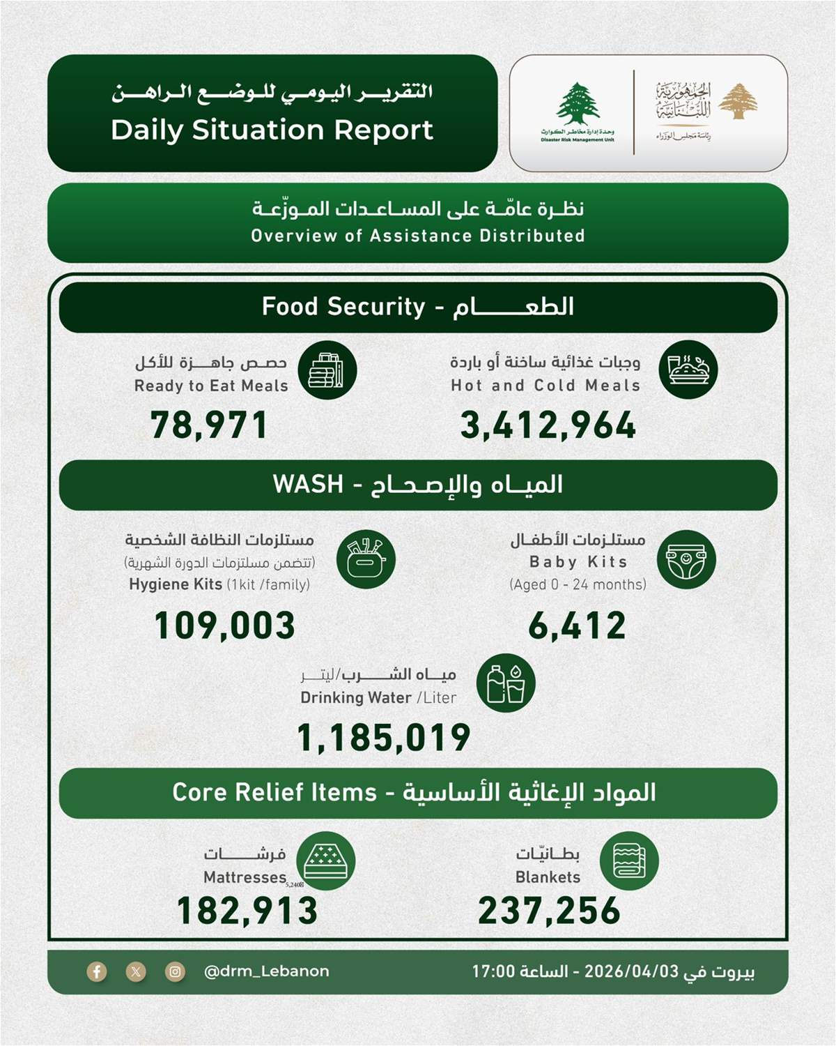 أصدرت “وحدة إدارة مخاطر الكوارث” في السراي الكبير تقريرها اليومي التقرير اليومي للوضع الراهن.
