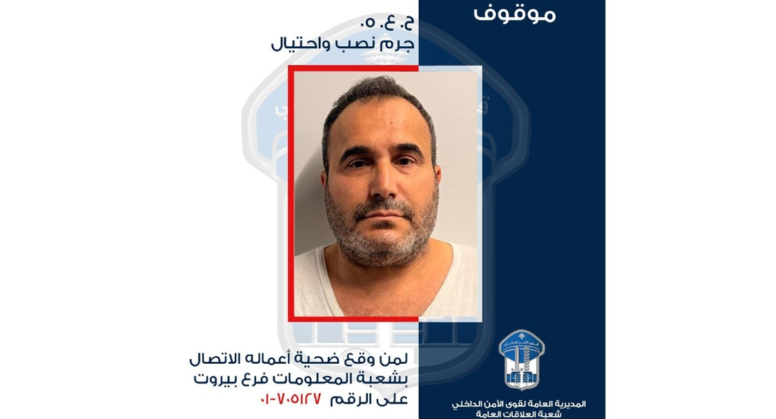 وأضاف البلاغ، “لذلك، تطلب هذه المديريّة العامّة من الذين وقعوا ضحيّة أعماله، وتعرّفوا إليه، الاتّصال بشعبة المعلومات – فرع بيروت على الرقم: 705127-01، تمهيدًا لاتّخاذ الإجراءات القانونيّة اللّازمة”.
