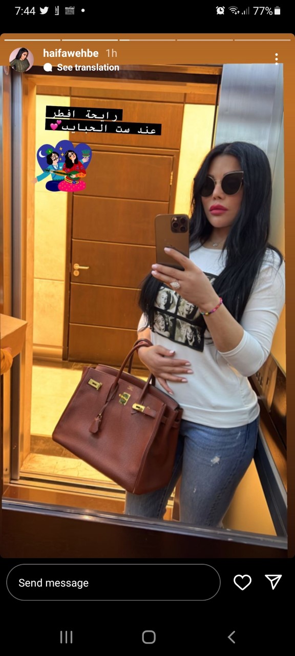 نشرت الفنانة هيفا وهبي صورا عبر خاصية “الستوري” على حسابها الخاص على انستغرام.