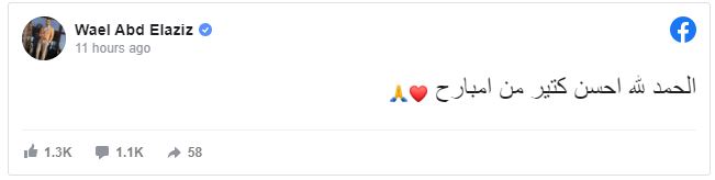 وقال عبر “فايسبوك” إنّ حالتها تتحسن قائلاً: “الحمد لله أحسن كثيراً من يوم أمس”.