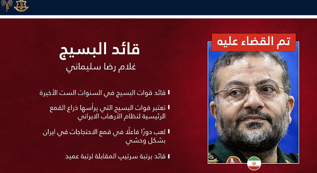 الجيش الإسرائيلي: اغتيال قائد قوات الباسيج في طهران
