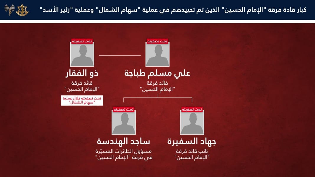 بالصورة: الجيش الإسرائيلي يعلن استهداف قائد فرقة الامام الحسين ومسؤولين كبار آخرين