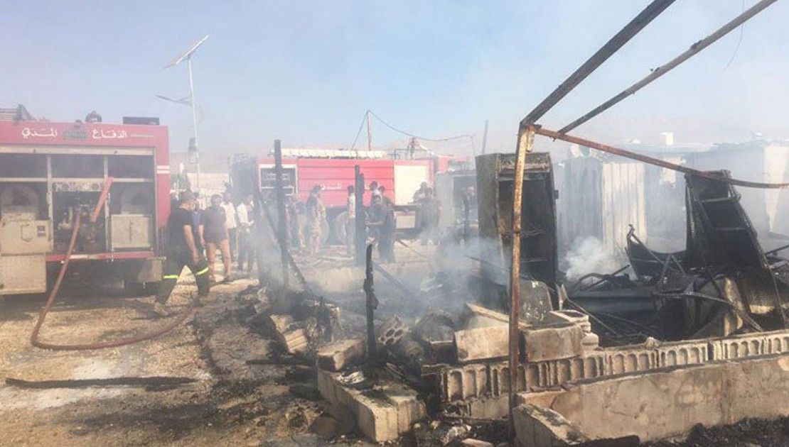 أخمد عناصر من الدفاع المدني صباح اليوم السبت حريقاً أتى على خمس عشرة خيمة داخل مخيم للنازحين ...