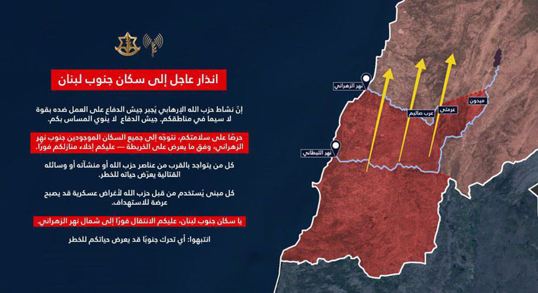 وجّه المتحدث باسم الجيش الإسرائيلي أفيخاي أدرعي تحذيرًا عاجلًا إلى “سكان جنوب لبنان المتواجدين ...