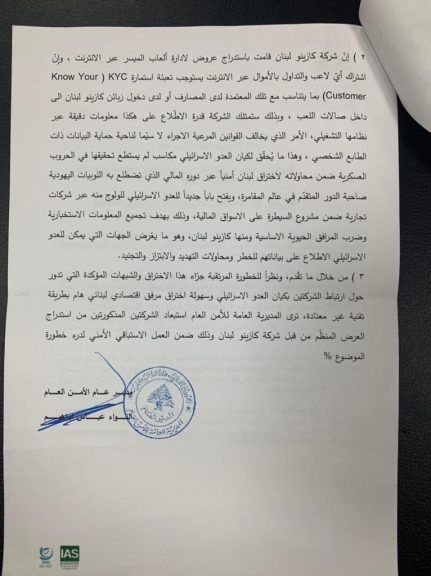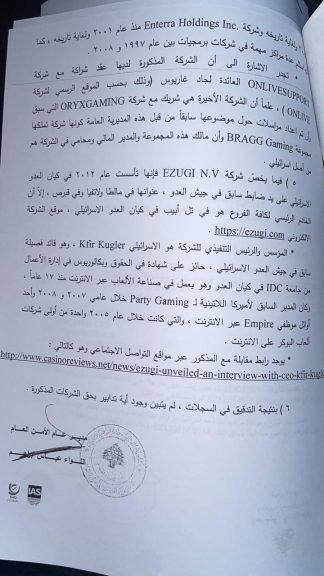 وفي أيلول 2021، رفعت إدارة كازينو لبنان قائمة جديدة بالمرشحين المحتملين إلى وزارة الاقتصاد. وتضمنت القائمة Intuition Software Solutions للبرمجيات و TV Zaidimal LTD و The Holdings A.S و EvenBet Gaming Limited و Ezugi N.V. وفي 6 كانون الثاني، أكد الأمن العام اللبناني على وجود علاقات بين هذه الشركات وإسرائيل، فهي إما مدارة من قبل إسرائيليين أو توظف مقيمين في إسرائيل أو مقرها في إسرائيل.