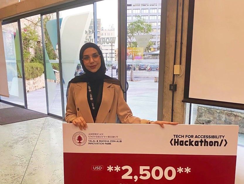 حلّت الطالبة فاطمة مبارك في المركز الأول في مباراة “Tech for Accessibility Hackathon” للجامعات التي نظّمتها الجامعة الأميركية في بيروت، ضمن فريق لتطوير أداة مساعدة تمكّن فاقدي البصر من تحديد المواقع والعناصر